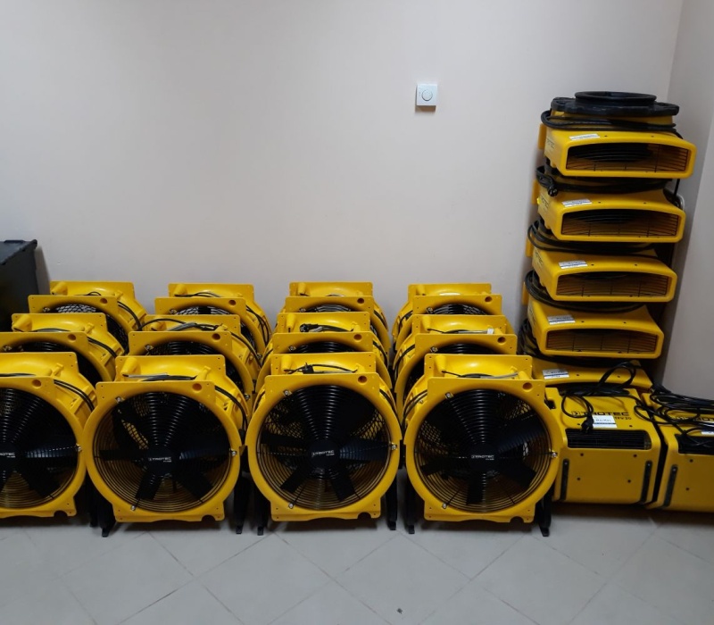 W przypadkach ograniczonych szkód wodnych lub gdy poszkodowany chce przeprowadzić część procesu samodzielnie, dostępny jest wynajem osuszaczy (osuszacze kondensacyjne, wentylator, turbowentylator, panele IR). Wynajem osuszaczy zawiera konfigurację startową oraz instrukcję pomiarów.
